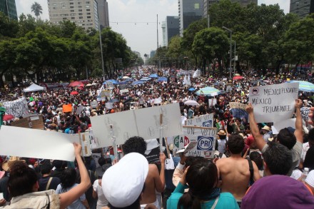MÉXICO, D.F. (apro).- Con pocos minutos de diferencia al cierre del candidato presidencial priista en el Estadio Azteca, en las calles del Centro Histórico y en el Paseo de la Reforma miles de jóvenes y ciudadanos protagonizaron la tercera marcha anti-Peña Nieto realizada en la Ciudad de México.