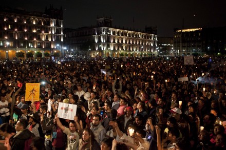 MÉXICO, D.F. (apro).- Miles de integrantes del movimiento #YoSoy132 llegaron esta noche al Zócalo capitalino con veladoras y antorchas luego de partir de Tlatelolco y pasar por Televisa Chapultepec.