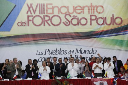 El Foro de Sao Paulo es un encuentro de partidos de izquierda fundado en 1990 por el Partido de los Trabajadores de Brasil. Según sus fundadores, fue constituido para debatir sobre el futuro del mundo tras la caída del Muro de Berlín, en Alemania, y las consecuencias del neoliberalismo en Latinoamérica y El Caribe.