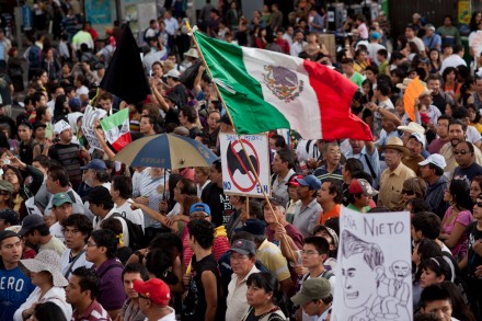 MÉXICO, D.F. (apro).- En protesta por lo que consideran la imposición de Enrique Peña Nieto como presidente de la República, miles de personas, principalmente jóvenes, marcharon esta tarde del Ángel de la Independencia para concentrarse en el Zócalo capitalino.