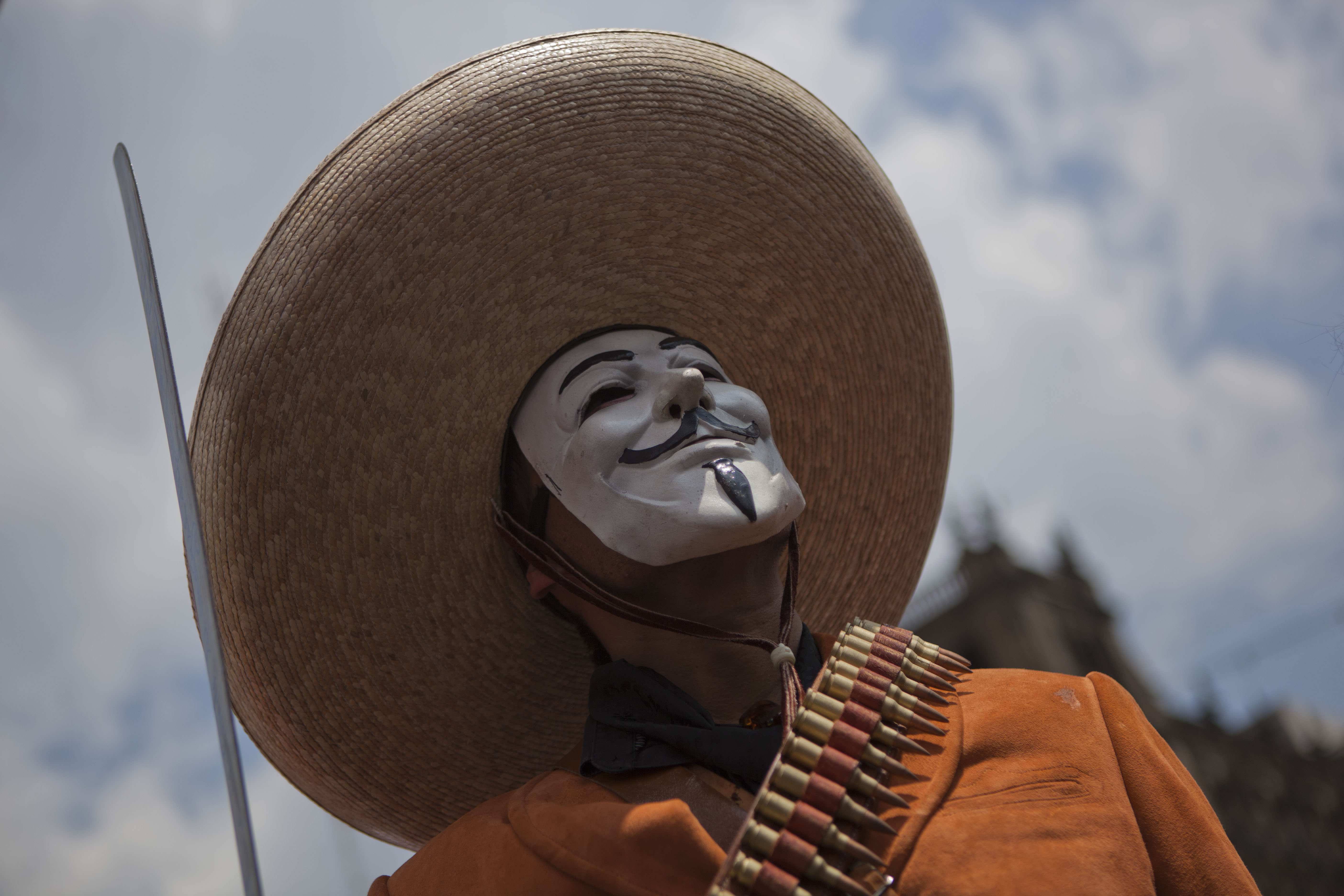 Cúbrase el rostro mientras sostiene mensajes subversivos como: “Sueña y serás libre en espíritu; lucha y serás libre en vida” Ché Guevara.