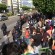 Mantenga una postura erguida. Camine con una bandera desde el Ángel hasta la Plaza de la Constitución.