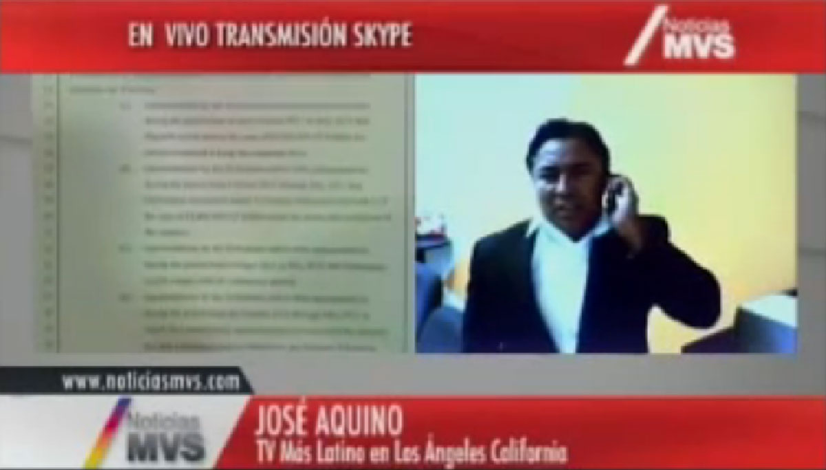 En entrevista radiofónica con Carmen Aristegui, en MVS Noticias, Aquino reiteró que el eje principal de su demanda es contra el empresario Alejandro Carrillo, quien fue el enlace para un proyecto de promoción televisiva de Enrique Peña Nieto entre la comunidad hispana de Estados Unidos y derivó en un presunto fraude por 56 millones de dólares.