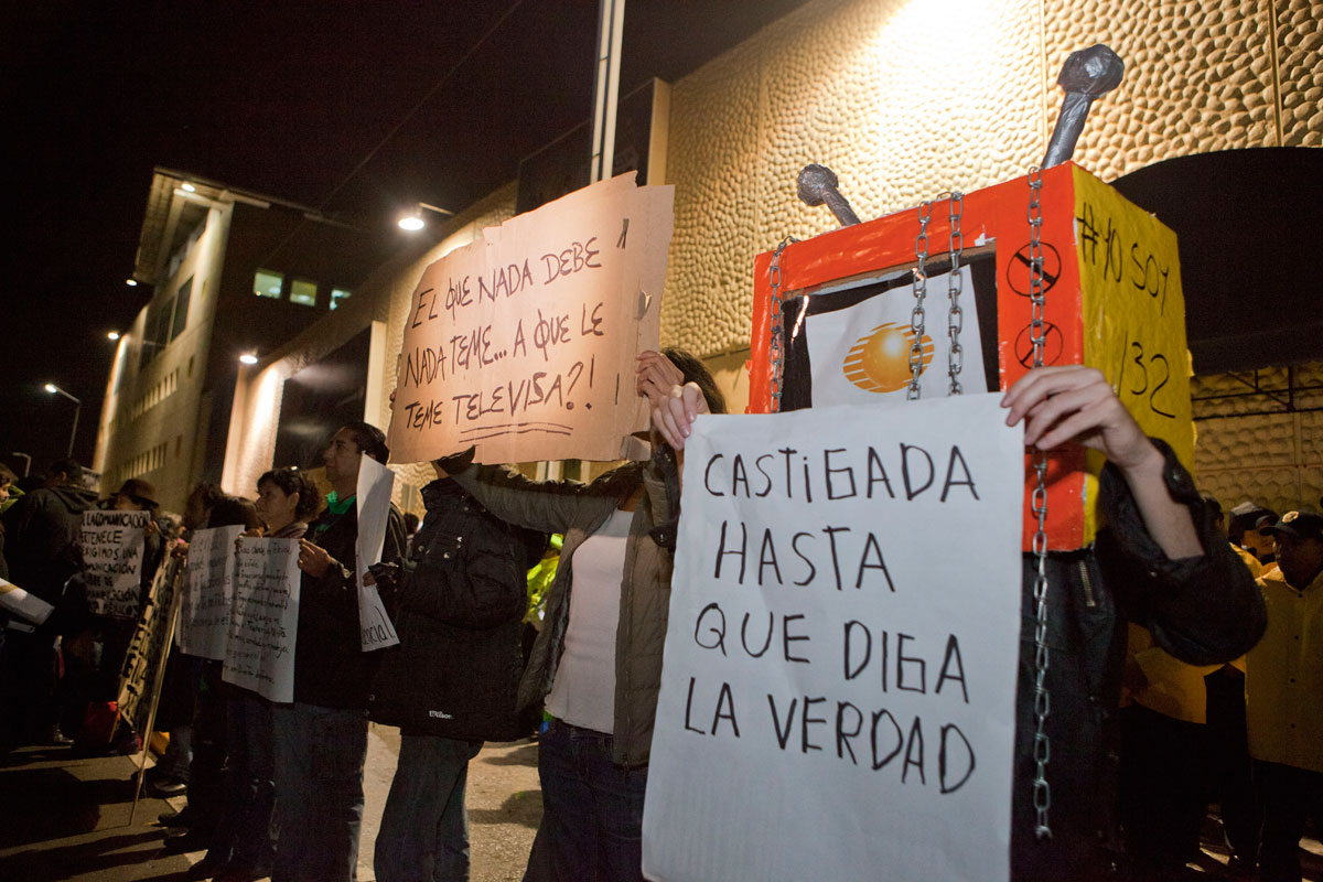 “Yo no diría que somos anti Peña ni anti Televisa, más bien me parece que ellos son… antinosotros”, dice Karla Gómez a las puertas de la televisora, rodeada por estudiantes como ella, electricistas, trabajadores, maestros, campesinos, artistas, policías, niños…