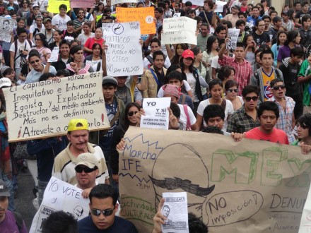 Además, los jóvenes montaron un festival artístico-cultural, a la vez que informaban a la ciudadanía sobre las presuntas irregularidades cometidas por el priista Peña Nieto, en relación con la compra de votos y el lavado de dinero en la campaña presidencial, así como la manipulación informativa por parte de las cadenas televisoras.