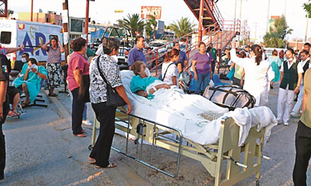 Un par de enfermeras deambulaban por las inmediaciones del hospital, ubicado en avenida Revolución. Iban abrazadas e intentaban darse ánimos. Cada una revisaba su celular para ver si había más mensajes. La movilización de socorristas continuaba. El sonido de las sirenas de ambulancias envolvió el ambiente.