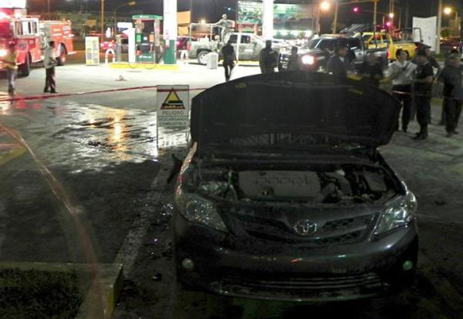 Empleados de una gasolinera cercana a Soriana intentaron apagar el fuego antes de que el auto explotara, rociándole el polvo de varios extinguidores, pero no lo consiguieron.