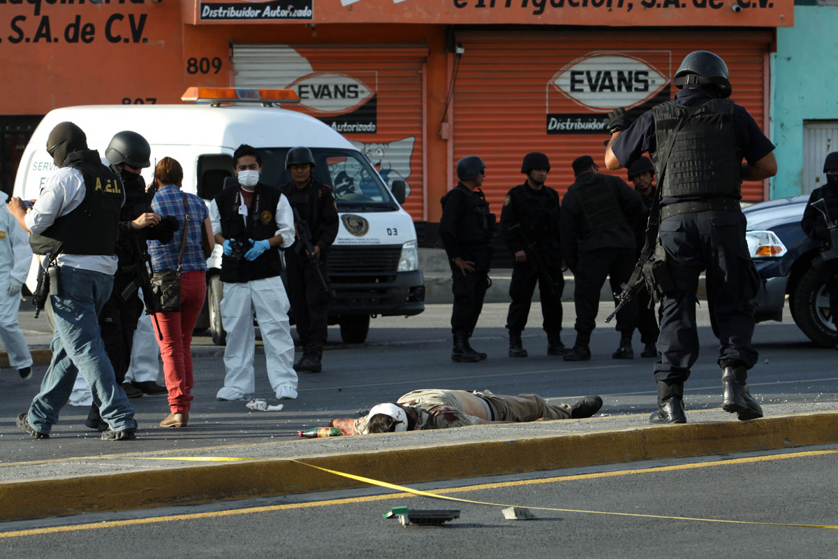 Uno de los sicarios asesinados en Monterrey. Foto: Víctor Hugo Valdivia |