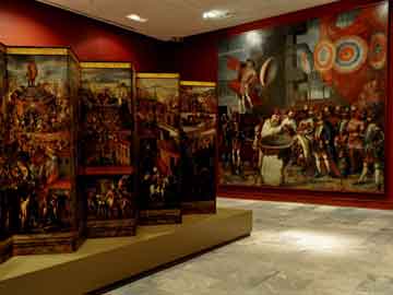 El tercer núcleo “Mitos, conquista y sociedades del Nuevo Mundo”, aquí se han colocado las obras que ilustran aspectos de la Conquista y el nuevo orden social tras la implantación del gobierno español.