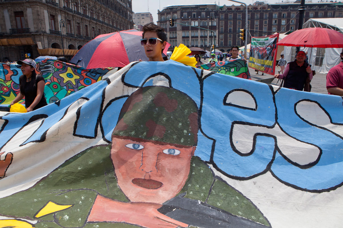Durante la marcha, algunos de los jóvenes rechazados portaron pancartas con la frase “Sisi” –sí quiero estudiar, sí quiero trabajar– y otros se disfrazaron de adelitas debido a que, dijeron, su lucha es una revolución por la educación.