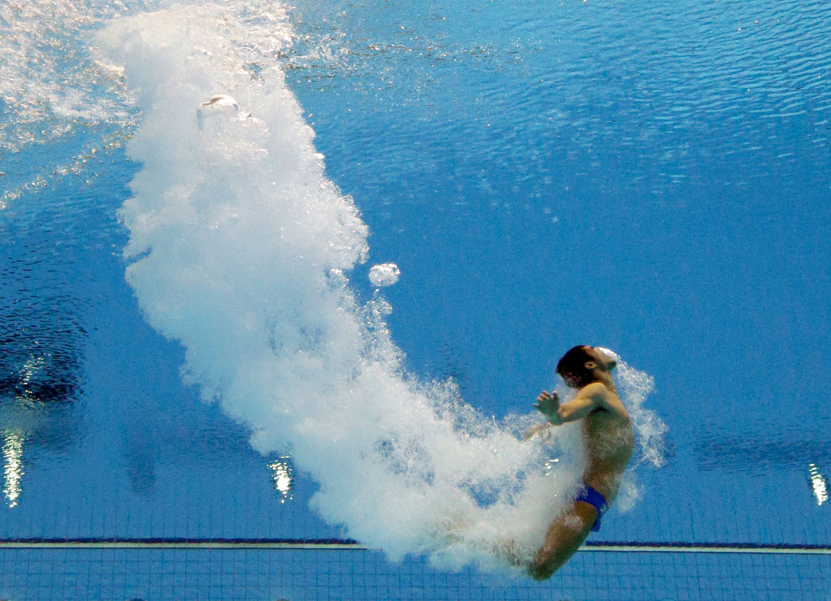 El Pollo ejecutó clavados de alto grado de dificultad (4.1, 3.8, 3.7) que no le alcanzaron para subirse al podio, pues la competencia fue muy reñida no sólo con los clavadistas chinos (Qiu Bo fue plata con 566.85 puntos y Lin Yue sexto), sino con David Boudia, de Estados Unidos, que se llevó el oro (568.65) y el inglés Tom Daley, de 18 años, que se alcanzó el bronce (556.95).
