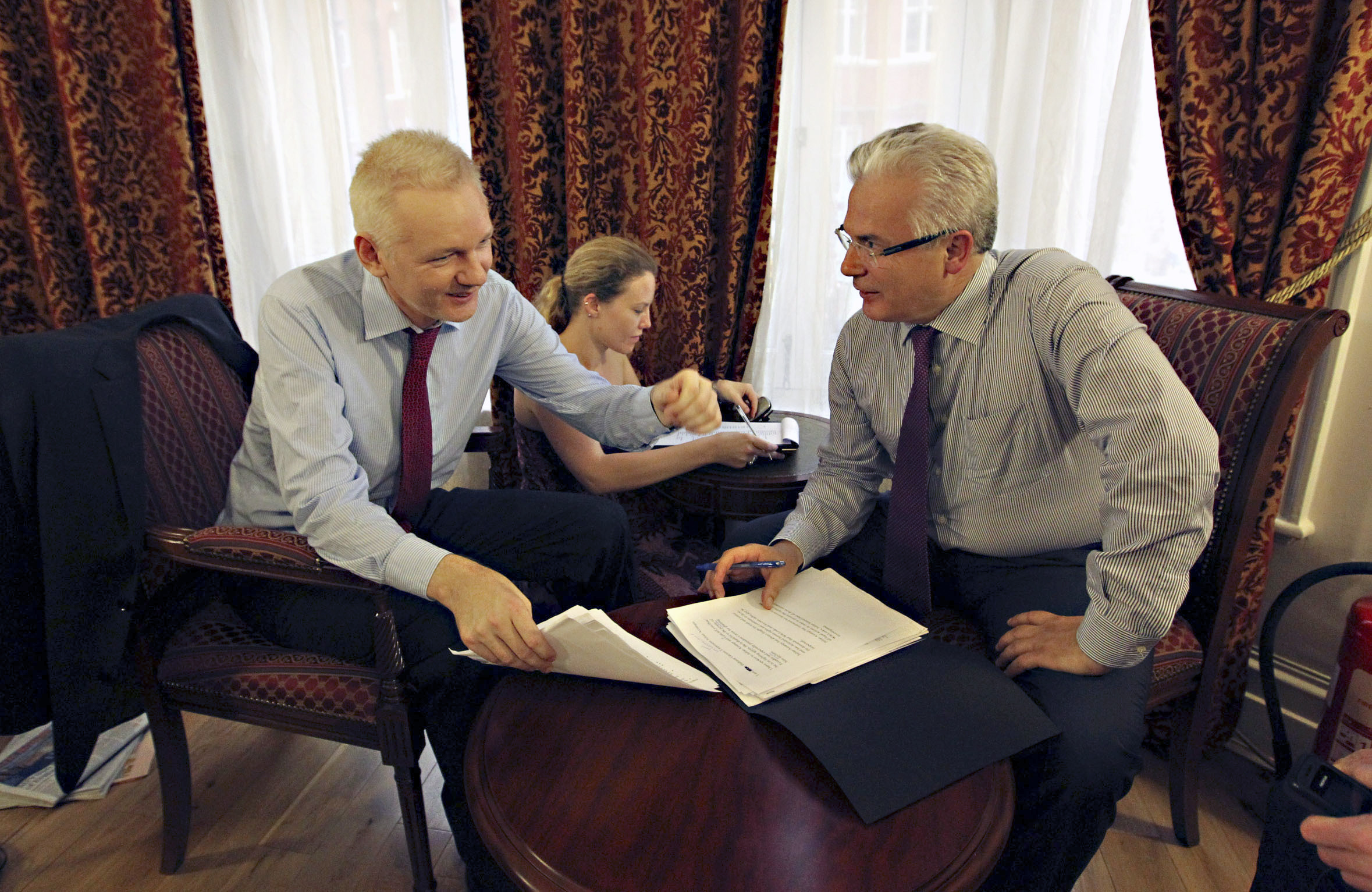 Assange le tomó la palabra. El 19 de junio ingresó a la embajada de Ecuador en Londres y pidió asilo político. Desde entonces el gobierno de Correa inició negociaciones a varias bandas: con los gobiernos de Gran Bretaña y Suecia y con los abogados de Assange, quienes viajaron varias veces a Quito. Correa designó al vicecanciller Marco Albuja para que, junto con un equipo de expertos en derecho internacional, encontrara una salida jurídica y política al caso.