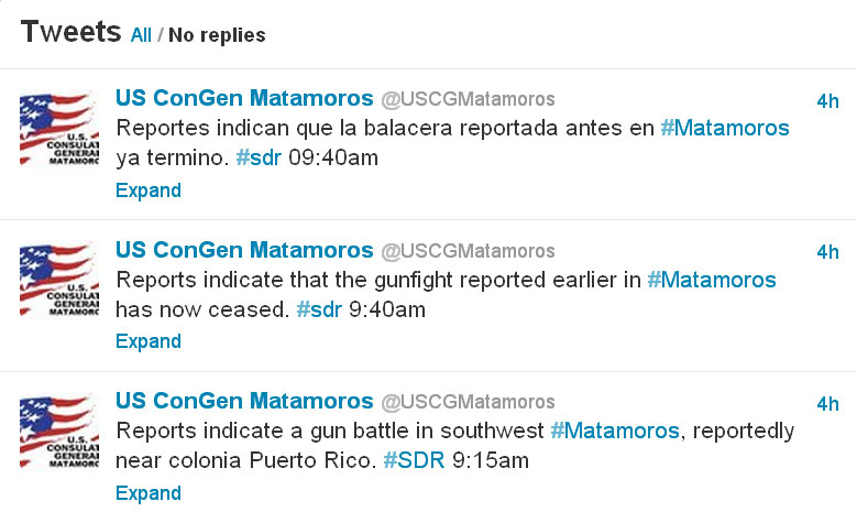 De acuerdo con un mensaje publicado en el perfil de Twitter del Consulado General de Estados Unidos (@USGMatamoros), esta mañana ocurrió una balacera en el suroeste de Matamoros, cerca de la colonia Puerto Rico.