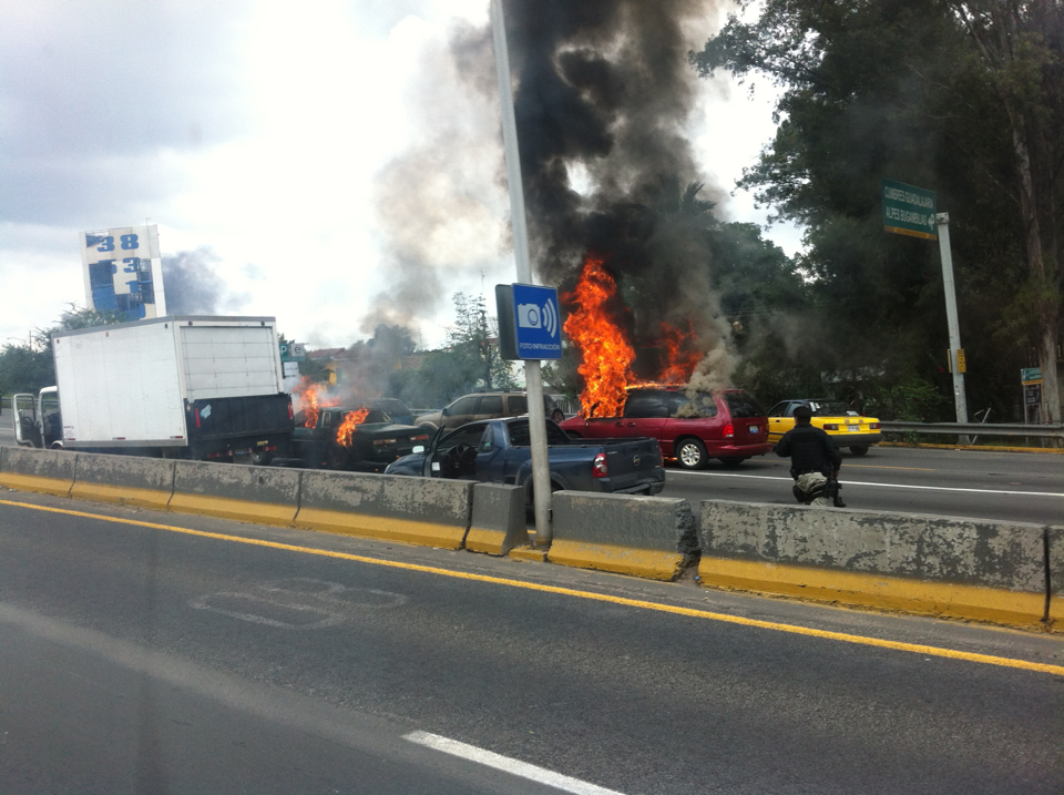 El 9 de marzo pasado, en la zona metropolitana de Guadalajara, se registaron 16 bloqueos y fueron incendiados 25 vehículos por el crimen organizado.