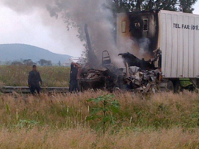 En el kilómetro 24 de la carretera Guadalajara-Chapala, en Ixtlahuacán de los Membrillos, un camión cisterna cargado con agua fue consumido por las llamas luego de que un comando bajó al chofer por la fuerza y prendieron fuego a la cabina.