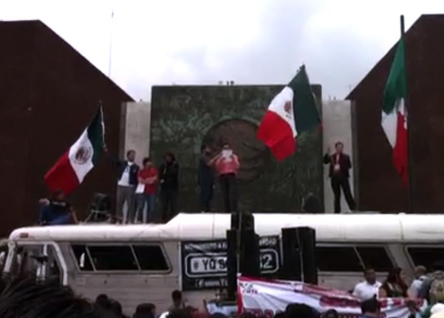 MÉXICO, D.F. (proceso.com.mx).- Desde el toldo de un camión como templete, frente al recinto del Congreso de la Unión, en San Lázaro, integrantes del movimiento #YoSoy132 dieron lectura a un resumen del contrainforme que redactaron para señalar las “mentiras” y “promesas falsas” que, en su análisis, han marcado la administración de Felipe Calderón al frente del gobierno federal.