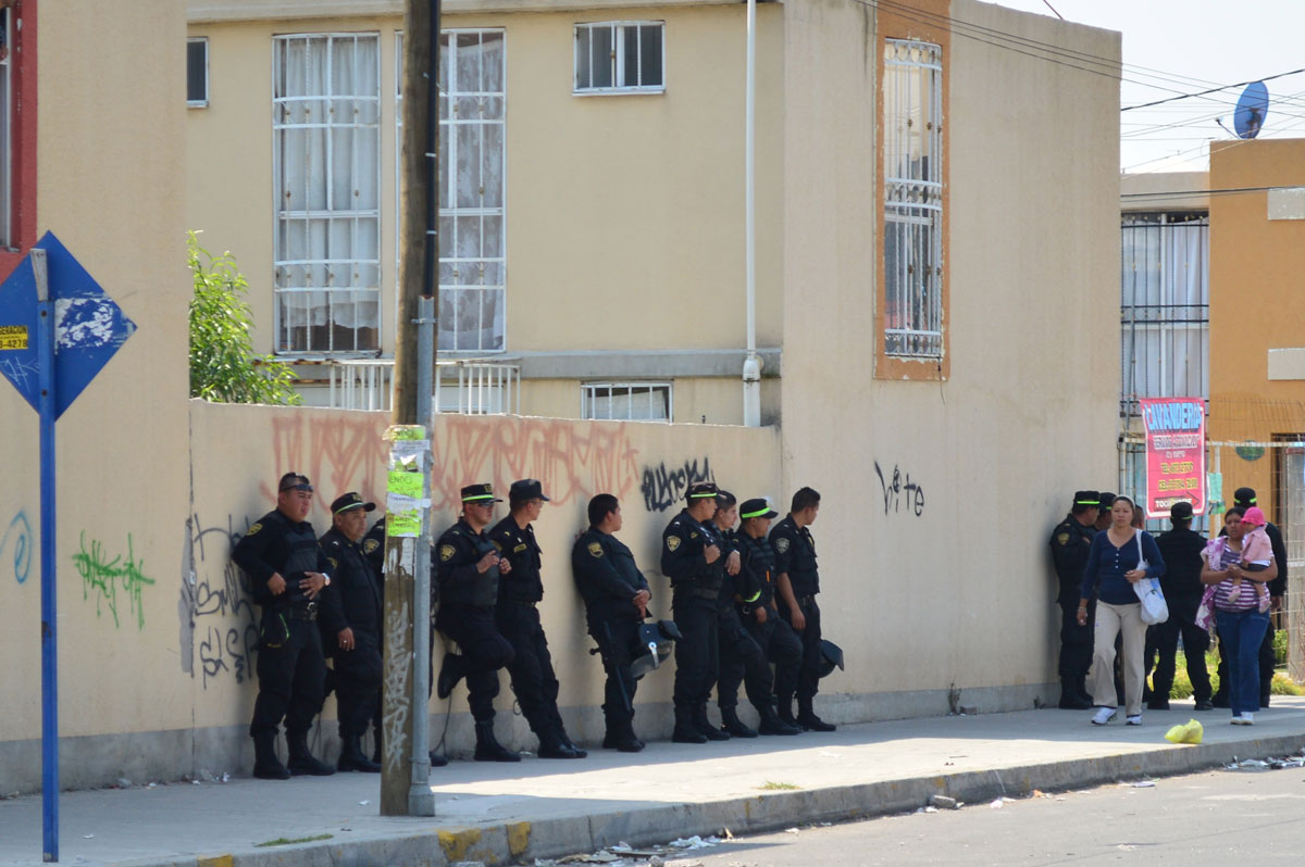 Los rumores se propagaron tras un enfrentamiento en Chicoloapan, donde policías mantienen vigilancia. Foto: David Deolarte |