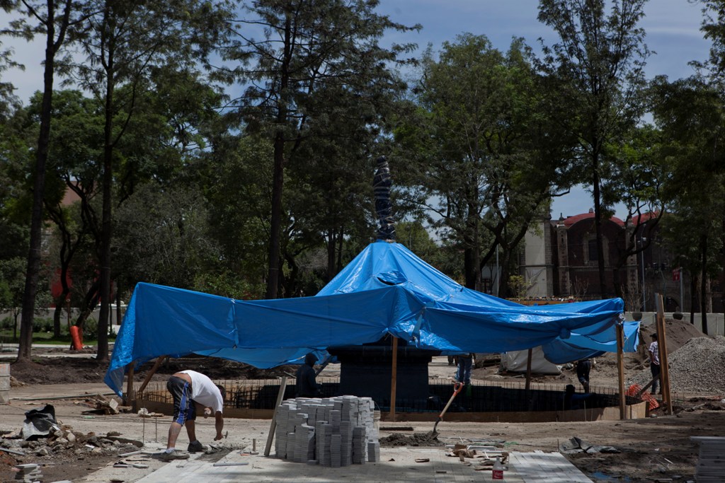 Explica que para la pavimentación se levantó el adoquín que tenía colocado desde 1973. “Cuando lo puso de moda Pedro Ramírez Vázquez en el Museo de Antropología en Chapultepec y se extendió a todos los camellones, el problema es que de nuevo se ve espléndido pero se deteriora fácilmente y se cucharea, la parte central se desgasta, se acumula el agua y ésta lo rompe. Aquí estaba hecho una desgracia, ahora se introdujo mármol de Santo Tomás.”