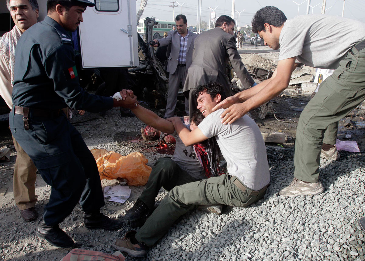 En Kabul, la capital afgana, una atacante suicida arremetió con un coche-bomba contra una furgoneta que transportaba a trabajadores sudafricanos de aviación, lo que dejó un saldo de al menos 12 personas muertas.