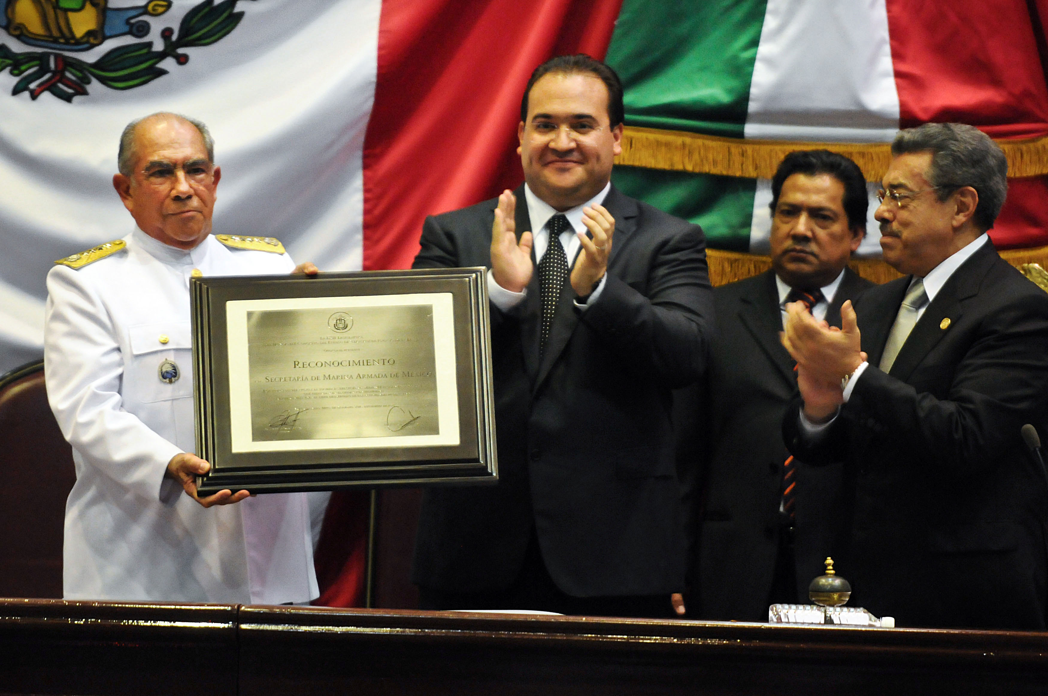 “Veracruz lo reconoce por sus logros. Deja usted un legado y liderazgo ejemplar. Así que cuenta con la gratitud de este pueblo generoso y entregado, que reconoce a un hombre que ha cumplido cabalmente con su deber de proteger a México y a Veracruz”, dijo el gobernador en una sesión solemne realizada en la Heroica Escuela Naval de Antón Lizardo, donde se le entregó al secretario de Marina la presea “Veracruz” al mérito ciudadano.