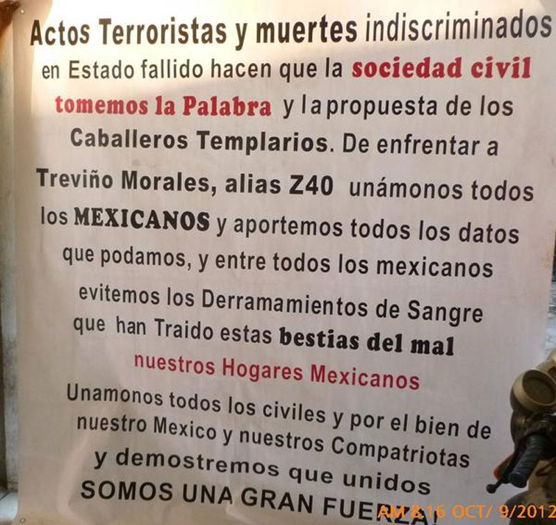 “Actos terroristas y muertes indiscriminadas en estados fallidos hacen que la sociedad civil tomemos la palabra de Los Caballeros Templarios: enfrentar a Treviño Morales El Z-40.
