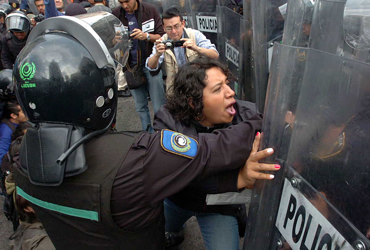MÉXICO, D.F. (apro).- Inconformes que se manifestaban contra las reformas laborales que se discutieron este martes en el Senado de la República, se enfrentaron con policías en las inmediaciones de la sede senatorial.