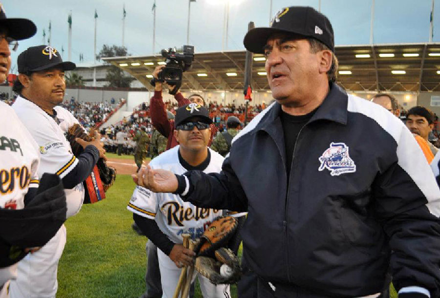 A pesar del ridículo que hizo, siguió empeñado en robar reflectores. Dos días después encabezó la ceremonia de apertura de la temporada de la LMB 2012 y lanzó la primera bola antes del partido, una tradición beisbolera. Al día siguiente, el 17 de marzo, sus declaraciones acapararon las páginas de la mayoría de los diarios, pese a que Rieleros perdió el juego.