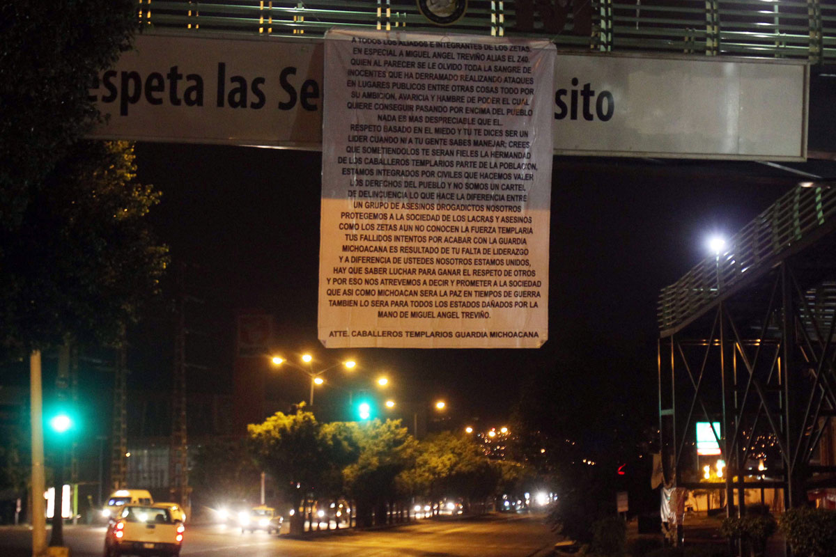 Desde principios de mes se inició la guerra contra El Z-40. En Monterrey, Nuevo León, aparecieron varias narcomantas firmadas por Los Caballeros Templarios, un grupo que hasta entonces no operaba en la capital regiomontana, según admitió el vocero del Consejo de Seguridad estatal, Jorge Domene. “Sabemos que todos estos acontecimientos son consecuencia de la caída del señor Lazcano”, precisó el funcionario.
