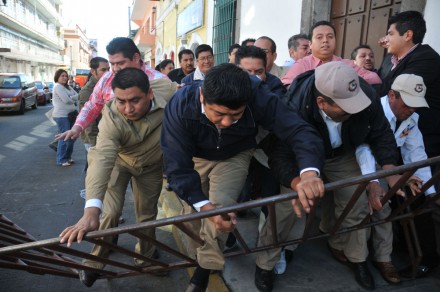 Fredy Ayala González con sus simpatizantes ingresó por la fuerza a las instalaciones, por lo que policías municipales y personal del organismo les impidieron el paso; sucedieron los empujones, golpes y el derribo de las vallas.