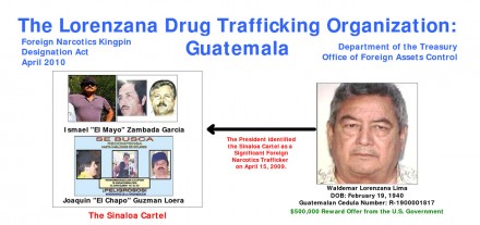 En abril de 2010, la OFAC designó a Lorenzana Lima y tres de sus hijos por facilitar las actividades de narcotráfico del cártel de Sinaloa en Guatemala.