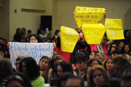 Durante el acto protocolario, en el que la guatemalteca Rigoberta Menchú Tum pretendía concretar alianzas y construir una agenda de trabajo común con el gobierno de Veracruz, otra media docena de madres de familia, todas vestidas de rosa, también se manifestaron a las afueras de los salones ejecutivos del hotel Crown Plaza para protestar por la desaparición de sus hijos y por “el incorrecto” retiro de la custodia.