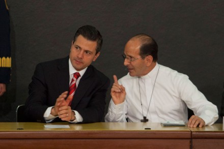 “Ya bastante nos hemos dividido, nos hemos fragmentado, nos hemos acusado, y el que esté libre de pecado que arroje la primera piedra”, añadió el cura de Tenosique, luego de haberse enlazado en abrazos con Peña Nieto y el secretario de Gobernación, Miguel Ángel Osorio Chong.