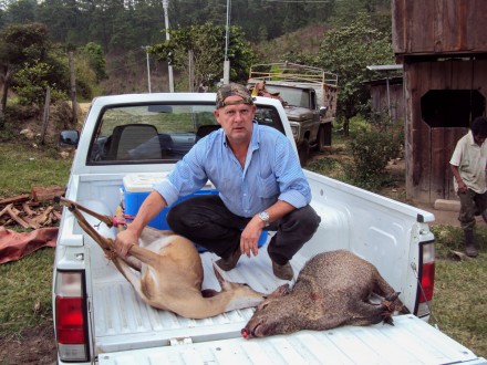 Otra de las imágenes muestra al mismo personaje arriba de una camioneta donde yacen un venado y un tapir.