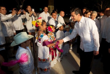 Al inaugurar esta noche el Gran Museo del Mundo Maya, que la exgobernadora Ivonne Ortega Pacheco inauguró a medio terminar el pasado 24 de septiembre, a escasos días de concluir su gestión, el mandatario dijo que este día llegó aquí, acompañado de su esposa Angélica Rivera y uno de sus hijos también para cargarse de “energía positiva”, “a cubrirnos de la buena vibra”.