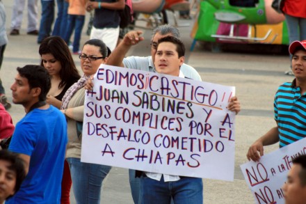 TUXTLA GUTIÉRREZ, Chis. (apro).- Con marchas y movilizaciones, miles de chiapanecos han salido a las calles para exigir al gobernador Manuel Velasco Coello que llame a cuentas a su compadre, el exgobernador Juan Sabines Guerrero, pero hasta ahora el actual mandatario ha hecho caso omiso a la demanda ciudadana.
