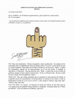 MÉXICO, D. F., (proceso.com.mx).- Horas después del acto encabezado por el presidente Enrique Peña Nieto y la secretaria de Desarrollo Social, Rosario Robles, en que presentaron el programa de lucha contra la pobreza en Chiapas, el subcomandante Marcos difundió un nuevo comunicado en el que advierte que “las limosnas” tienen que otorgarlas en otro lugar.