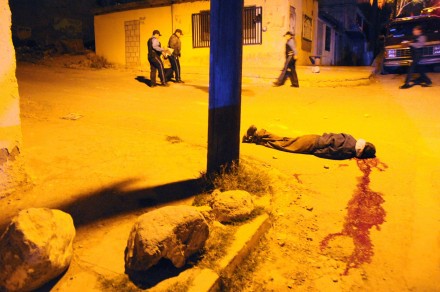 Es la escena de un crimen cometido en marzo de 2010 en la colonia Paso del Norte, en Ciudad Juárez. La imagen, lejos del morbo y el amarillismo, no deja de plantear interrogantes al espectador; es obra del veterano fotoperiodista de guerra holandés Teun Voeten y forma parte del libro gráfico Narco Estado: narcoviolencia en México.