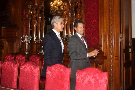 La actitud inicial de Mancera lo llevó a mantener una muy cordial relación con el presidente Peña Nieto, lo cual llevó a Ebrard a declarar que el jefe de Gobierno no cumplía su papel de opositor. La respuesta del primero fue inmediata: “Él está haciendo política y… yo soy el jefe de Gobierno”.