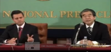 MÉXICO, D.F. (proceso.com.mx).- Mientras un funcionario del Japan National Press Club lo presentaba en una conferencia ante medios nacionales e internacionales durante su visita a Japón, el presidente Enrique Peña Nieto fue captado haciendo comentarios y señas.