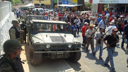 A las 11:00 horas, más de tres mil personas, entre mujeres, niños y hombres armados con rifles, escopetas y pistolas -procedentes de varias comunidades de este municipio de la región Centro y diversos puntos de Costa Chica y Montaña-, marcharon por las calles de la cabecera municipal, ante la mirada de soldados y policías municipales, en un hecho que refleja el hartazgo ciudadano ante la indolencia y omisión que ha caracterizado a las autoridades de los tres niveles de gobierno frente a la narcoviolencia.