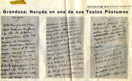 En septiembre, en Isla Negra, había firmado el escrito que tituló Tres hombres. Como no pudo llegar al Museo Nacional de Bellas Artes, la embajada de México en Santiago lo editó en un folleto, que Julio Scherer trajo al país y lo reprodujo en el periódico Excélsior que él dirigía, el 30 de septiembre de 1973. Para que las nuevas generaciones lo conozcan aquí está: