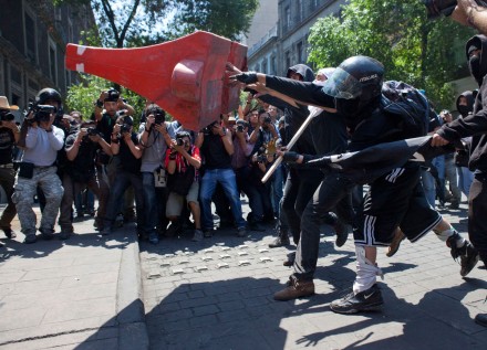 MÉXICO, D.F. (apro).- Desde que un centenar de jóvenes encapuchados se sumaron a la marcha convocada por 37 organizaciones independientes para conmemorar el Día Internacional del Trabajo, se sintió la tensión.