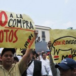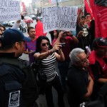 Los docentes optaron por lanzar consignas en contra del gobierno de Enrique Peña Nieto: “si quieren evaluar; por Peña hay que empezar, maestro callado, seguro diputado y voto de castigo para el PRI”.