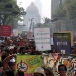 Rumbo al Monumento a la Revolución marcha un grupo que exige detener la barbarie que ha dejado la guerra contra las drogas.