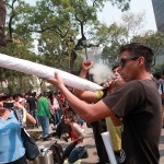 El humo se arremolina detrás de Bellas Artes. Los manifestantes corean: “El narco y el gobierno son el mismo infierno”. Otros gritan “Le-ga-li-za-ción, le-ga-li-za-ción” como si se tratara de un mantra.