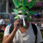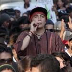 Pablo no es la única especie intergaláctica en la marcha para exigir la despenalización en el uso de la mariguana: Hay una legión de tambores alrededor de una fuente en la Alameda. El saltimbanqui que se escapó de un circo. Los raperos que riman a la mota. Los que usan antifaz con dibujos de plantas de mariguana. Los intelectuales que critican la política militar del Estado. Los bilingües que gritan: “¡No more drug war!”. Un saxofonista con cascabeles en los tobillos.