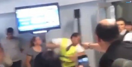 Según un video de dos minutos y nueve segundos que circula desde el pasado domingo 26 en YouTube, los pasajeros se molestan por la cancelación del vuelo y la actitud asumida por el empleado.