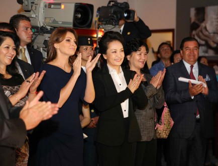Las señoras Rivera y Liyuan, fueron recibidas por Jorge Eduardo Murguía, vicepresidente de producción de Televisa, en torno a ellos, dentro de Televisa San Ángel, los guardias del Estado Mayor, oficiales hombres y mujeres, portando su uniforme de gala, cerca de las encumbradas damas que pasaron de la farándula a la cosa pública por razón marital.