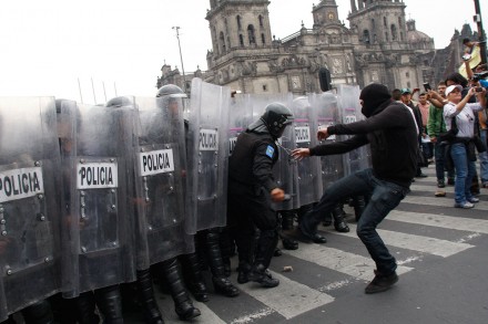 Luego de la irrupción de los manifestantes, decenas de granaderos los encapsularon, sin embargo, los activistas y familiares no realizaron ningún acto de violencia.
