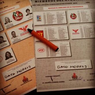 Algunos se dieron a la tarea de escribir el nombre de Morris con una crayola negra y con ese mismo objeto dibujar una carita de gato, con los bigotes sobresaliendo del recuadro de la boleta electoral.
